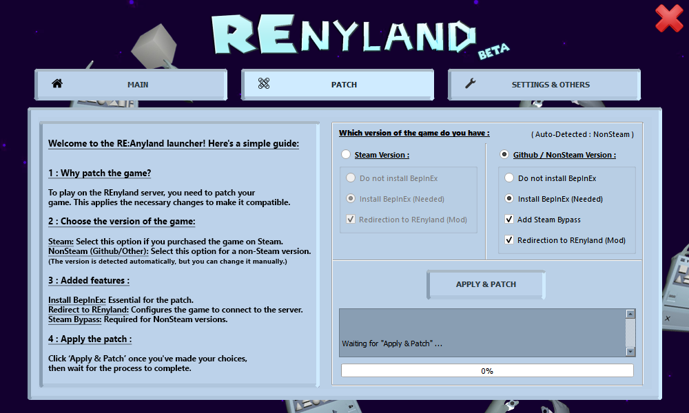 Option for Steam and non-Steam users with automatic detection of the game version.